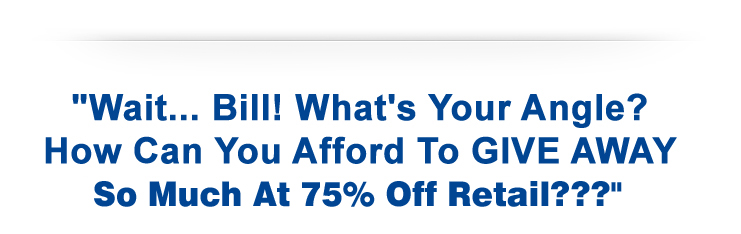 This invaluable Complete Business Package has everything you need to start, grow and even double your business in the next 90 days. Bill has helped thousands of business owners and entrepreneurs in more than thirty countries over the past two decades profit wildly with "inside-out" business consulting and proven marketing strategy. Now, you can get his practical, step-by-step training at a "highway robbery" investment at 88% off... $ |