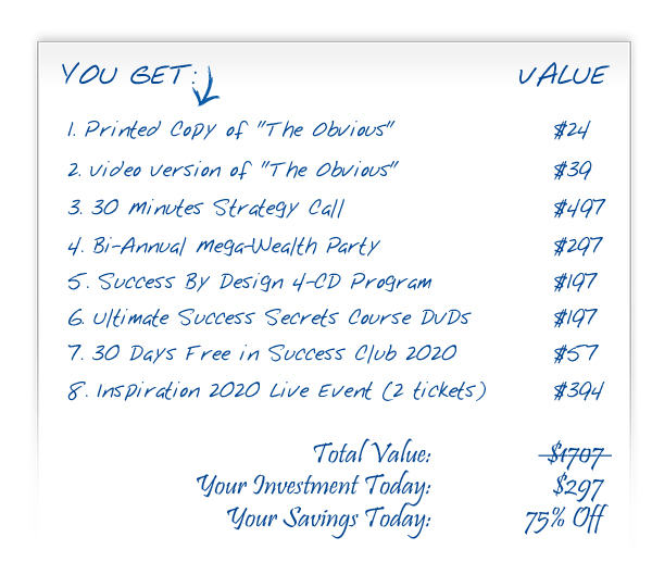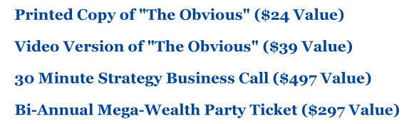 Hey, I'm here to serve you and make sure you succeed in business, wealth and life. So I'm not stopping at the book, video, coaching call and event. Here's what else I'll give you... |