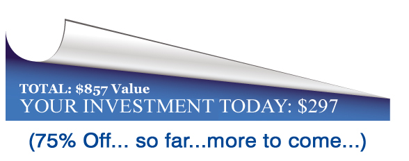 Once you review the above invaluable business programs worth over $1,100 sent straight to your front door... you'll you need ongoing support, help and resources to keep your business dream alive and moving. I get that. That's why you'll get for FREE, thirty day access to my Powerteam Imperial Club. Inside this "filled-to-the-brim" membership site, you'll find guides, checklists, directories to help you start, grow or double your business. Plus... there are discounts on live events, special access and VIP privileges for my current and upcoming programs. It is literally knowledge at your fingertips that could help you build massive wealth in a very short time. And more importantly... this membership site is updated with urgent, important and newsworthy information you need today. You get the first month ($57 value) absolutely FREE, when you invest in the MVP Success Pack. Giving the package a $ |